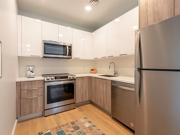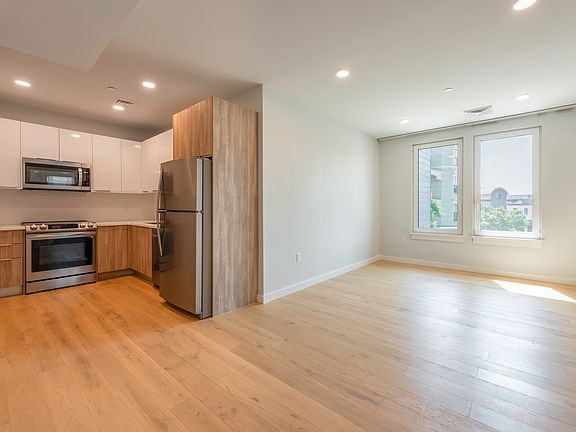 Somerville Union Square brand new construction South facing 1 bedroom 1 bath available now! Located right in the heart of Union Square with award winning dining, Bow Market and the T. Spacious unit with white oak flooring throughout, high ceilings, recessed lighting and central air! Laundry in unit! Gorgeous triple pane windows, ERV system for constant air renewal. Porcelanosa and Krion kitchen, Grohe fixtures, stainless appliances, designer bathroom. An elevator building with bike parking and a huge common roof deck with spectacular views! Available now, sorry no pets. Easy access to Porter, MIT and Kendall Square. no pets laundry in unit central air brand new construction - be the first to live in! elevator building HUGE common roof deck 1 Year