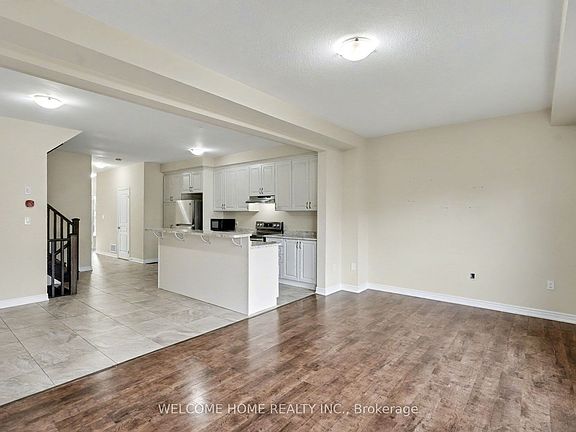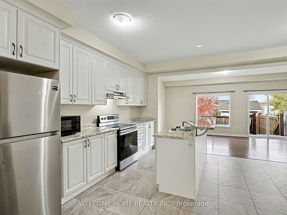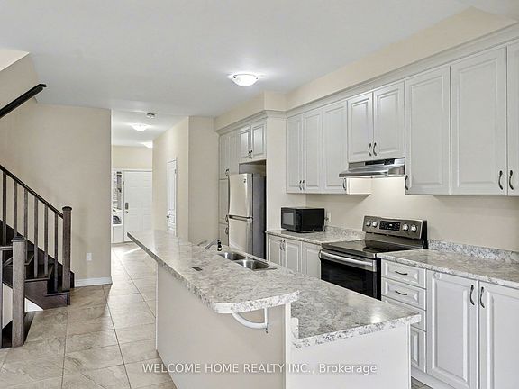 Open Concept 3 Bedroom plus second floor Den, Perfect for Home Office or Nursery! 3 washroom, 3 Car Parking Townhouse. EACH BEDROOM WITH A WALK IN CLOSET!! White Kitchen with stainless steel appliances and large Island with ample Bar Seating, combined with Dining. Large Living Room with Walk out to Rear Fully Fenced Backyard. Garage has interior access to home. Big Primary Bedroom, with 3 Piece Ensuite! Untouched Basement perfect for Rec Area. Close To Highway Access, Nature Trails, Shopping, Grocery, Restaurants & Schools. Great Family Neighborhood.