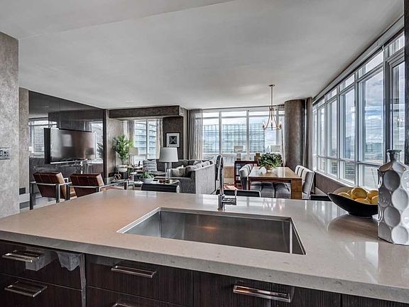 Fully Furnished 1750 Sq Ft Designed And Upgraded Corner Suite In The Heart Of Downtown. Includes Upgraded Furniture, Custom Built Ins, 9 Ft Ceilings And Breathtaking Floor To Ceiling Views Showing The Lake, Scotiabank Arena And Cn Tower. $200,000 In Upgrades. Beautiful Master Bdrm, Walk In Closet And Heated Floors In Ensuite. Private 2nd Bdrm With Family Room That Can Be Made Into 3rd Bdrm. 24Hrs Concierge, Longos, Lcbo In Building With Access To Path.