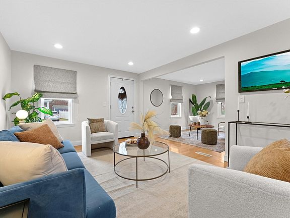 Welcome to 65 Brigham Ave—a beautifully updated home that combines thoughtful design, flexible living spaces, and exceptional outdoor living. The sunny front porch with pergola opens into a light-filled interior featuring hardwood floors, recessed lighting, and a spacious, open-concept layout. The renovated kitchen boasts quartz countertops, herringbone backsplash, brass hardware, and a large island that flows seamlessly into the dining area. The show-stopping bathroom features designer green tile, gold fixtures, a double vanity, and a soaking tub. A first-floor bedroom offers single-level living or a perfect home office. Step outside to an oversized back deck with string lights—ideal for entertaining or relaxing. Enjoy a rare two-car garage, fenced backyard, and unbeatable access to downtown Marlborough, local restaurants, Williams Lake Boardwalk, and the Assabet River Rail Trail—perfect for all your outdoor adventures!