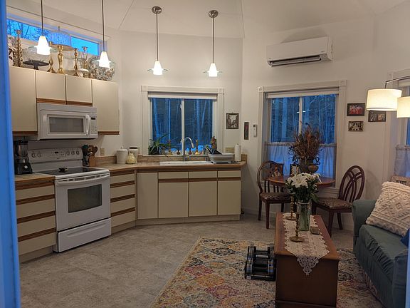 1 bedroom apartment (640 sq ft) for $1300/mo with everything included: heat, water, electric, cable/internet, and plowing. Looking for single professional tenant (firm about single occupancy). Newly constructed in 2019 with heat pump for heating/cooling and radiant in the floor. Private entrance with covered entry porch. Quiet, not visible from the road. There is a washer/dryer hookup provided in the apartment. Landlords live on site including children and a dog. Property is a 5 acre woodsy lot, great area for walks or x-country skiing. Multiple nearby organic farms with farm stands to get local produce. There's a pick your own berry farm within a few minutes. Apartment available, current tenant ready to move. Can bring own furnishings, but we have a full-size bed and pullout loveseat available for use if wanted. All utilities, cable/internet, and plowing included. No smoking allowed. Plenty of parking provided. Willing to consider a cat. Rent increase will be 3% yearly from date lease is signed.
