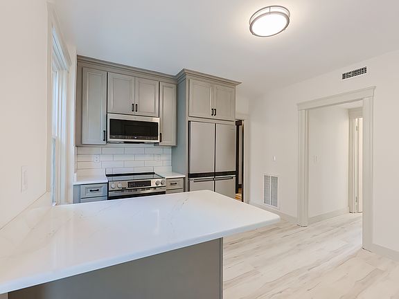 Beautifully renovated 2nd-floor unit blending classic charm with modern style. This spacious 1,195 sq. ft. apartment features hardwood floors, high ceilings, and large windows for abundant natural light. The stunning kitchen offers stone counters, custom cabinets, and premium appliances perfect for entertaining. Enjoy a spa-inspired bathroom with sleek walk-in showers and contemporary finishes. Central air, high-efficiency heating, and a smart layout ensure comfort year-round. Relax on your private front porch, just steps from downtown shops, dining, and the East Bay Bike Path. Now leasing don't miss this stylish, sought-after location.