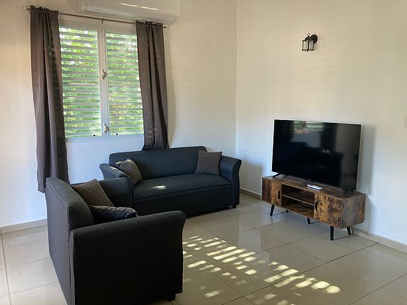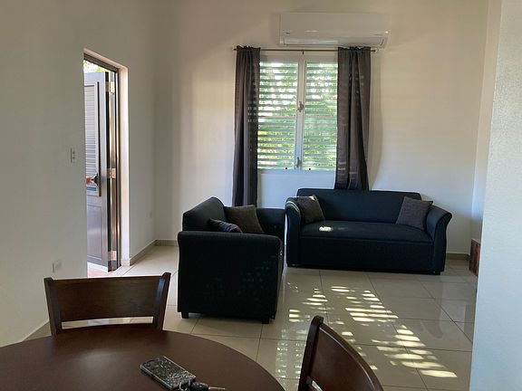 Comfortable apartment on the 2nd floor. It features 3 bedrooms and 2 full bathrooms. The master bedroom includes a walk-in closet. Living room, dining room and kitchen areas. Fully furnished with: bathrooms sets in two rooms, living room furniture, tv with stand, dining set, stove, refrigerator, microwave and coffee maker. A/C in all bathrooms and living room. Shared laundry area and parking available.