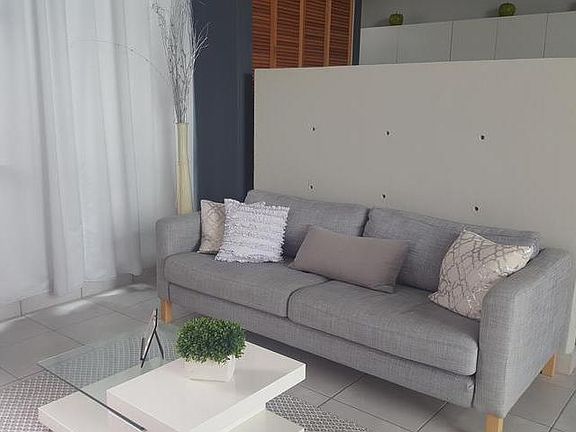 Elegant residence with three bedrooms, two bathrooms, living room, kitchen, laundry, double carport on a plot of 325 mts. It includes the following: gas stove, refrigerator, washing machine, dryer, two (2) air conditioning units, line heater, microwave, ceiling fan, living room set, dining room and Queen room in the main room. The maintenance of the urbanization is included what offers 24 hour security and the use and enjoyment of the facilities.