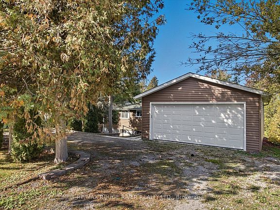 Welcome to this 3+1-bedroom detached walk-out bungalow in beautiful Omemee, offering direct waterfront living on the shores of Pigeon Lake! This home is full of character and charm, providing the perfect opportunity for new owners to personalize and make it their own. The main level features a cozy living room with a propane fireplace, a bright dining room overlooking the backyard and lake, and a functional galley-style kitchen ready for your custom touch. Three bedrooms and a convenient 2-piece bathroom complete this level. A stunning spiral staircase leads to the fully finished walk-out basement, featuring an additional bedroom, a 4-piece bathroom, a spacious recreation room with a wood-burning fireplace, and a workshop area. The double doors from the rec room open to a large backyard perfect for relaxing or entertaining. Enjoy the outdoors with your own dry boathouse, complete with a concrete ramp into the water and a wooden dock for lakeside enjoyment. A large double-car garage provides ample storage and parking. This home is heated by both forced-air propane and electric baseboard heaters, offering flexibility and comfort throughout the seasons. Whether you're looking for a year-round residence or a peaceful cottage getaway, this property offers the best of waterfront living with endless potential. Some photos have been virtually staged
