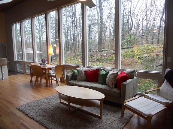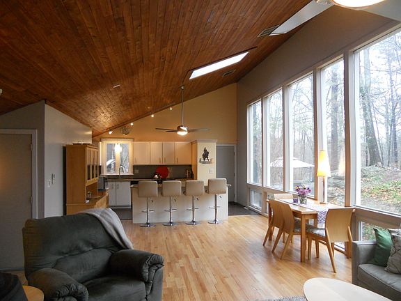 A nature lovers dream and close to everything!! The updated, open concept living area has breathtaking nature views from the floor to ceiling wall of windows - it will stop you in your tracks! Family gatherings will be truly memorable in the main living area: updated kitchen with granite counters, large granite island with breakfast bar, & stainless appliances opens to the living/dining area with soaring ceilings, wall of windows, gleaming hardwood floors and a wood stove. The four bedrooms are conveniently situated below the living area offering plenty of privacy. Enjoy the natural setting on the large private deck. Explore what nature has to offer on your private wooded land or spend the day riding your horses in the riding ring just outside your back door. This beautiful 2.5 acre property includes a well equiped barn with 3 horse stalls & heated tack room, a large riding ring and lots and lots of wooded space! This is truly a one of a kind property - must see!