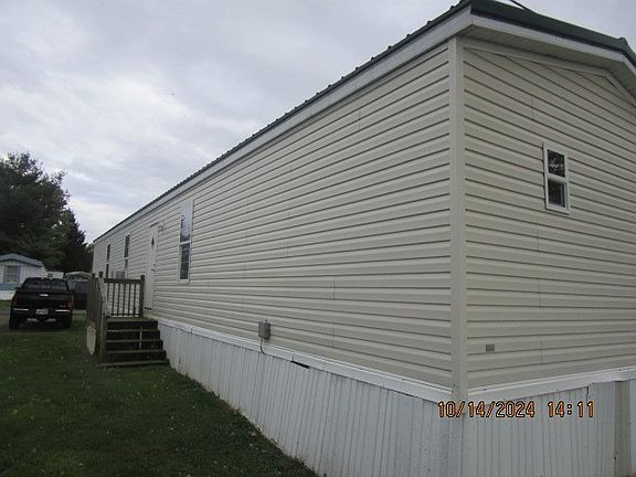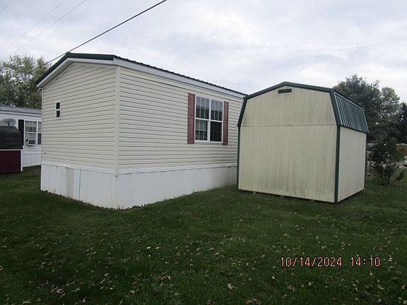 2014 single wide home with 3 bedrooms-2 full bathroom-large storage shed. Room sizes are approx. Contingent upon seller finding suitable housing. Buyer will need to qualify for Zane Village if the home Is to stay. Nice setting backs up to an empty field. Singlewide can be moved. Mansion model-model number 4074-serial number 34950.