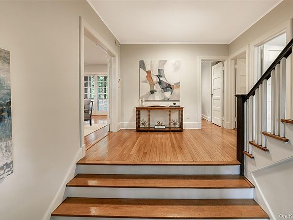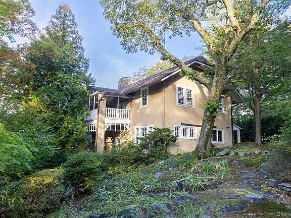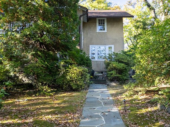 Step onto the beautiful botanical grounds of this 4-BR Riverview Manor home in Hastings-on-Hudson and you feel the immediate sense of peace and privacy that the .35-acre property provides, sheltered by mature trees and blooming plants. Since being built in 1910 by the storied Odell family, the home has only been sold once and has thus retained its unique and beautiful architectural character. Notable for its 4 porches, it allows outdoor access and views of the wooded terrain from every floor of the home. Enter off a wonderful full-width south-facing covered front porch - a lovely location for lounging on a summer day. An especially wide and gracious entry greets you on the inside, with a turn-back stair, setting the stage for the authentic wood trim and hardwood floors throughout. French doors to a grand living room frame a view to the room’s wood-burning fireplace, featuring an impressive mantel of locally quarried stone. On the room’s north wall, another set of French doors leads to covered porch #2, from which to look onto the level rear yard through tall evergreens. Bathed in southern light, find an elegant dining room with plenty of lush greenery views. The adjacent kitchen is spacious and bright, with Viking stove, large windows overlooking stone outcroppings and side yard vegetation, and a split farmhouse door to the garden beyond. Four large bedrooms upstairs all have two exposures onto leafy landscapes, as does the spacious period bath. Two of the bedrooms offer wide French doors to 2 separate porches: One leading to a northern porch from which to see seasonal Hudson River views and gorgeous year-round sunsets, and one to a more prominent southern porch with gabled roof, original decorative wood railing, and glimpses of the front foliage. Discover a 500-sf walk-out basement currently being used as an artist’s studio, and versatile enough for any use. It includes a French door to the rear yard, as well as laundry room, storage, and hookup for future bath. The solitude of this picturesque site is palpable, but when you feel like leaving, you can easily stroll to Hillside Woods, Sugar Pond, or the Village pool and tennis courts. The Aqueduct trail, Hastings’ vibrant downtown, and Metro-North station are just down the hill. With award-winning schools, this is indeed a rare Rivertowns retreat.