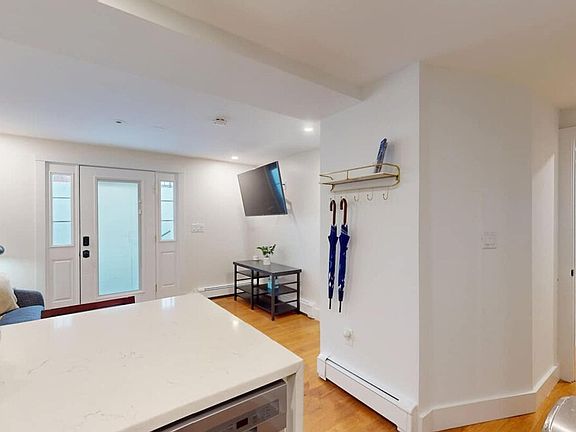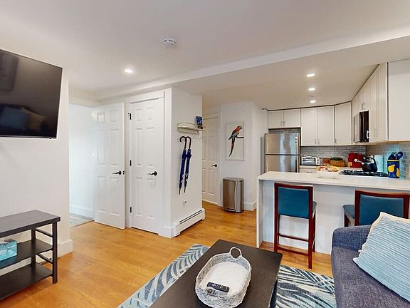 Welcome to this beautifully renovated 1-bedroom, 1-bath apartment nestled in a tranquil Cambridge neighborhood. Thoughtfully updated in 2024, this ground-level unit combines modern design with everyday comfort, offering a peaceful retreat just minutes from the city's vibrant hubs. Step through your private entrance into an open-concept living area adorned with high ceilings and recessed lighting. The inviting space features a cozy seating area with a large flat-screen TV, perfect for relaxing evenings. The sleek kitchen boasts quartz countertops, a rainfall breakfast bar, stainless steel appliances, and gas cooking. The bedroom offers a comfortable queen-sized bed with fresh linens, ensuring restful nights. The modern tiled bathroom includes a glass shower and radiant heated floors for added luxury. A dedicated office area provides a quiet space for remote work or study. Additional amenities include in-unit laundry, central air conditioning, and a small outdoor area to unwind. Free parking is available on the premises. Pack n' Play and high-top chair are available upon request for $10 per night. For stays of 28 days and longer, an additional cleaning fee of $100 will be charged. Pets are considered on a case-by-case basis with an additional $150 pet cleaning fee per pet, and a pet contract is required. There is a $150 lost key fee. North Cambridge, a neighborhood in Cambridge, Massachusetts, is characterized by its diverse community and mix of housing options, including single-family homes, apartment buildings, and condominiums. The area is known for its family-friendly atmosphere and strong sense of community. Parks like Danehy Park offer residents recreational opportunities with walking and biking trails, sports fields, and playgrounds. Smoking is strictly prohibited inside the premises, including all rooms and shared spaces, and a cleaning fee of $300 will be charged if evidence of smoking is found. Guests should avoid creating excessive noise, especially between 10:00 p.m. and 8:00 a.m. A $300 fine will apply for verified noise complaints that unduly impact neighboring residents and/or violate local noise ordinances. Guests agree to pay a fee of $150 for a lost key. If the guest is locked out due to their own actions, a lockout fee of $100 will apply for assistance in regaining access to the property. Upon vacating the apartment, please take all personal belongings with you. The host is not responsible for items left behind. While assistance in recovering forgotten items may be provided, their return cannot be guaranteed. A dedicated office area provides a quiet space for remote work or study.