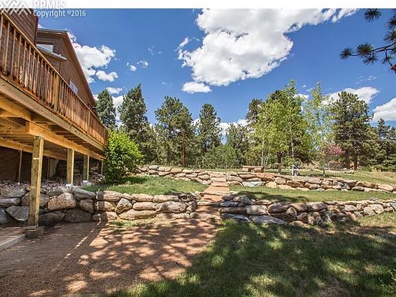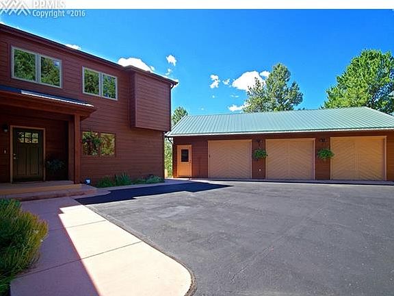 This home has it all! Unobstructed views of Pikes Peak, privacy, tons of storage, nature and close proximity to town. Over two and one half acres of mixed meadow, pines, aspen trees and a fully landscaped yard. The main level boasts newly refinished hickory floors, gourmet kitchen with nearly new, matching GE Cafe Series stainless steel appliances, granite counter tops, custom ledge stone back splash and solid Maple Midcontinent Cabinetry, with soft close drawers and pull out shelves. Under cabinet LED lighting & Legrand Adorne light switches. Dining room has white oak flooring with a custom cherry inlay.A keeping room off the kitchen with a Vermont Cast Iron wood-burning stove and a walk-out to the NEW redwood deck with an amazing view of America's Mountain, Pikes Peak! On the other end of the main level is another sitting area with an additional walk-out to the deck. Also included on the main level is a bedroom/office with a 3/4 fully tiled bath. A powder room, laundry room and pantry complete the main level.The master is on the upper level with an ensuite 5-piece bath and his and hers walk-in closets. There is another bedroom which is currently being used as a sitting/exercise room so the entire upper level is a master suite! There is an additional 3/4 bath.The upper hallway has a balcony that overlooks the main level. Lower level offers bar/kitchen area with a refrigerator and brand new electric cooktop, granite counter tops and tile backsplash. Walk-out to the the new stained concrete patio with views of Pikes Peak. Large bedroom and 3/4 bath with soapstone countertop and knotty alder cabinets. Additionally, there is a second laundry room and large storage room with shelving.Two-car attached garage as well as a three-bay fully finished and heated shop.