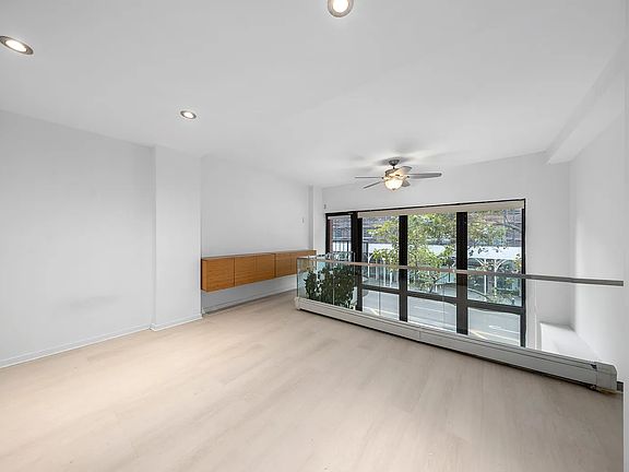 This stunning home captivates with a double-height wall of windows, flooding the space with natural light and creating an open, airy ambiance. Brand new blond hardwood floors complement a custom open chef's kitchen, 1.5 baths, and ample closet space throughout.