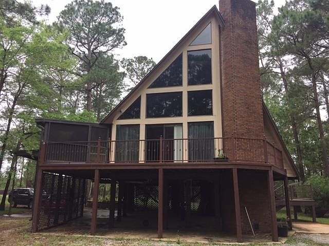 Foreclosure for you! Wonderful A-frame property on a beautiful wooded lot close to the bay. With a little TLC this home could be great! Interior features tongue and groove cypress wood throughout. Additional acreage is available.