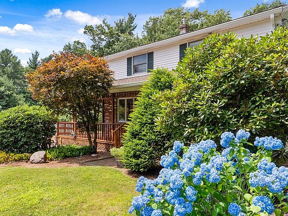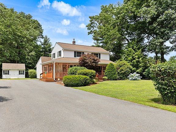 WELCOME to this ONE OF A KIND 3 bed colonial of Foxboro! Enter the home thru the charming wrap-around front porch & pride of ownership & meticulous care is evident throughout. Main level features an open plan w/ wood floors & recessed lighting. A bright and sunny Kitchen/ Dining Room flows into the Living Rm with tons of natural light and slider door. Perfect for Entertaining! The spacious 1st floor bedroom has vaulted ceilings & can also be used as an Office, Media or Play Rm. Second level offers 2 generous Bedrooms & fully renovated Bathroom w/ large tile shower & double vanity. The unfinished Lower Level allows plenty of room for storage. Enjoy sitting on the large wood deck overlooking the private backyard w/ stunning matured landscaping. Huge shed w/ electricity offers extra storage for outdoor tools. Conveniently located to major routes/commuter rail & shopping. Nearby area amenities include Gillette Stadium/ Patriot Place just minutes away. MANY UPGRADES....A MUST SEE!