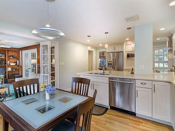 Welcome to Needham! Fabulous opportunity to own this 3 bedroom Garrison Colonial with 2 car garage on well maintained level lot with lush plantings! This home offers gorgeous, newer kitchen with quartz counter tops, designer back splash, lighting, stainless appliances and custom french doors! First floor has ample size dining room with built in china cabinet,double sided fireplace between living room and library. Family room with 3 newer sliders to mahogany deck overlooking patio and private yard perfect for entertaining. Office or 4th bedroom rounds out the first floor. 2nd level offers 3 bedrooms and updated common bath! Central Air! This property is located in a fabulous neighborhood near commuter rail .04 mi., Broadmeadow School and major routes! Don't miss!