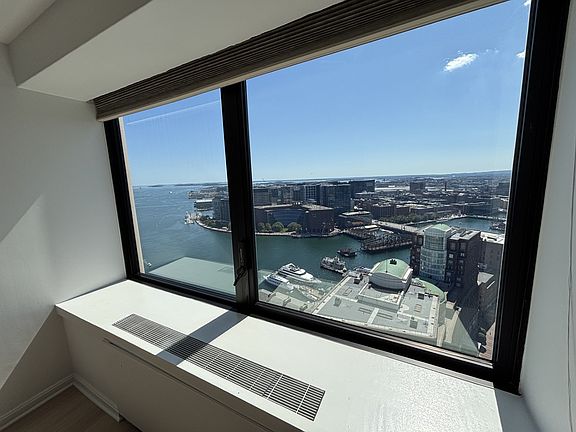 Beautifully renovated two-bedroom, one-and-a-half-bath corner residence on the 35th floor of Harbor Towers. Boasting a private balcony, sweeping Harbor and skyline views, this home offers a rare combination of style, comfort, and convenience. The welcoming foyer leads into a sleek, modern open kitchen with white quartz countertops, gas cooking, and custom finishes, ideal for entertaining or everyday living. Spacious, sun-filled living room with harbor views. Gleaming hardwood floors run throughout. Both bathrooms have been thoughtfully renovated with contemporary design and premium materials. Residents enjoy resort-style amenities including 24-hour concierge, full-time maintenance staff, professional management, a heated outdoor pool, beautifully landscaped fenced-in yard, and available rental parking. Perfectly located on the Waterfront, Greenway, and vibrant North End dining and shopping, this Harbor Towers gem is move-in ready!