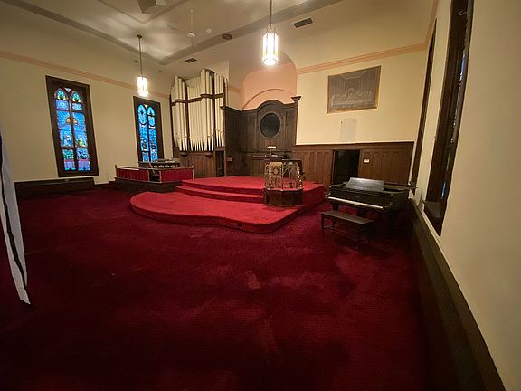 Here we have a 14,000 sq ft church converted to a house for sale. The building is in amazing condition. It consists of 8 fully furnished bedrooms, 2 full bathrooms with jacuzzis, 2 half bathrooms, a movie theatre room, an entertainment/gym room, and an enormous living room. It has both electric and oil heating, a commercial kitchen with 2 sinks, a washer and dryer, and even a pizza oven style stove. It consists of 3 floors. The building also has its original stained glass windows, organ, piano, bell, and more. The property would be amazing for an Airbnb, nursing home, day care, your personal home, and so much more. If your interested in a video tour of the property just text me.
