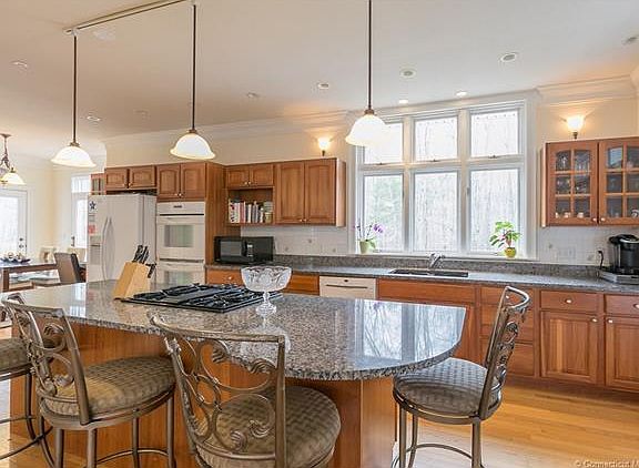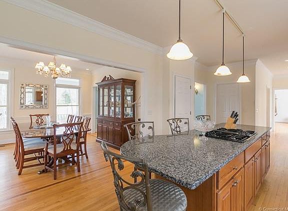 Situated on 2+ acres in a great neighborhood is this 4 bedroom 2.1 bath stunning colonial. This home offers a spacious feel with over-sized rooms and hardwood floors throughout. Custom kitchen with granite, gas cook-top and large island ideal for entertaining. Cathedral family room with fireplace and gorgeous windows letting the light shine in. Large master suite with walk-in closets, and full bath with private tub and sitting area. Lower level is finished with a rec room and a home gym. Nestled at the end of the cul-de-sac the deck overlooks a private back yard abutting the town forest. Must See.