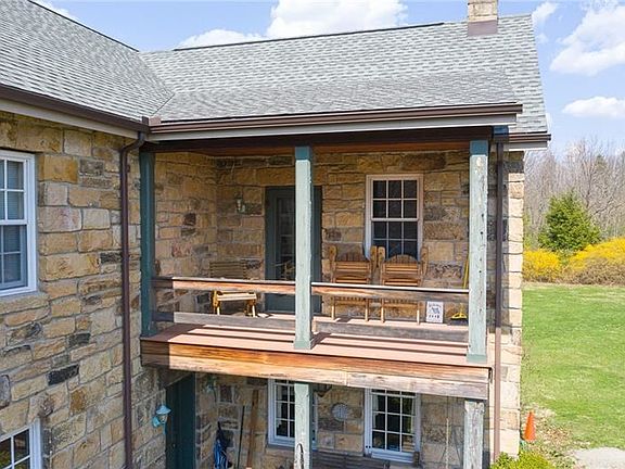 Step back in time and enjoy all that this (modern day built) Colonial home has to offer! Over 5 beautiful acres of land and your very own pond! Every part of this house has been meticulously picked out to make this home true to the Colonial period. Newly installed SOLAR PANELS. All closet doors, built-ins and door fixtures have been hand picked from 18th Century structures, sanded and painted to match the custom trim throughout. The kitchen cabinets, island, and large pantry were custom built to flow with the cherry wood floor. The main living area boasts White Oak plank floors while the den and upstairs areas are White Pine. The wide stairway leads to the sitting area at the top of the steps and 4 large bedrooms. The master BR has deep closets, fireplace with antique mantle, balcony and en-suite bathroom with claw foot tub and stand-up shower. Sandstone structure, 9 ft ceilings downstairs. Five WB fireplaces.