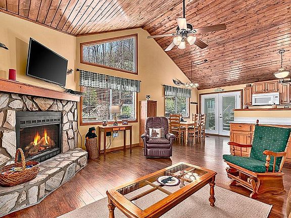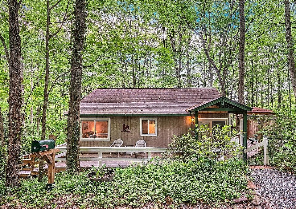 Smoky Mountain Treehouse is a smoky mountain vacation home nestled high in the treetops at 3700 feet in the heart of Maggie Valley, North Carolina. There is a feeling of nature and tranquility in the peaceful, outdoor environment yet close to all modern conveniences in Maggie Valley and surrounding areas. The cabin is very clean and is tastefully decorated which makes it a cozy retreat. The home sleeps six people comfortably. We are kid and pet friendly. We also own the house next door which is great for larger parties wanting to say next to each other. This single story home has been completely redone with brand new appliances, new washer/dryer, central heat & AC, wood burning fireplace, hot tub, cable, high speed WiFi, 2 master bedrooms & bathrooms, sleeper sofa and a deck that wraps around the house. The home is surrounded by beauty and can be enjoyed as you sit and relax in the rocking chairs on the covered back porch nestled among the trees. The side deck has a gas grill and picnic table which are great for enjoying a nice meal or playing games/cards with loved ones. There is also a hot tub, perfect after a long day of hiking, or enjoying a morning cup of coffee. The kitchen is fully stocked with pots, pans, dishes, utensils and small appliances- everything you need to prepare a wonderful meal. The home has a wood burning fireplace in the family room and is a great place to relax, read a good book or make smores’ with the kids. We encourage you to open up the door and go for a hike around the property to enjoy all of its natural beauty. This cabin truly provides you with all the comforts of home.