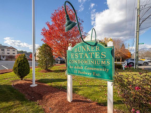 Welcome to Bunker Estates, a desirable and beautifully maintained 55+ community in the heart of Derry, NH—just minutes to shopping, dining, and I-93 and about 2 minutes drive to the Derry rail trail. This bright and inviting second-floor unit features an eat-in kitchen, a spacious living room with slider to a private covered porch, and two comfortable bedrooms, including a primary suite with 2 good size closets and a master bathroom. A lovely foyer, in-unit washer/dryer, and an additional full bath add convenience. Enjoy assigned parking close to the entrance and a beautiful gazebo, elevator plus extra storage in the basement. Residents also have access to a lovely clubhouse in this active, friendly community. There's always something happen like coffee hours, walking group and exercise sessions. Pets under 25 lbs allowed. At this price, it won't last. Come to our first showing at the Open House on Saturday, November 15th from 2-4pm.