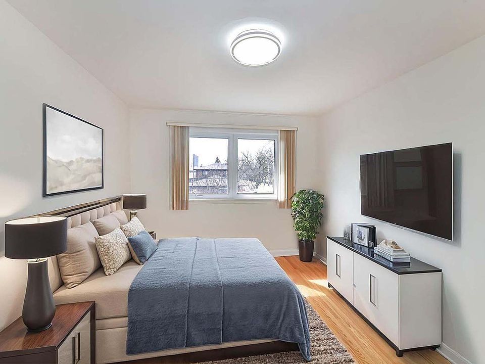 This spacious and bright, newly renovated two-level upper offers comfort and convenience in a vibrant North York community. Natural light streams through the large windows and glass doors of this corner lot, detached home. The modern main floor features an eat-in kitchen with ceramic flooring and walk out to a back porch overlooking the expansive, fenced-in backyard and tree-lined street. An open concept family room and dining area create an ideal gathering space. A laundry with space for a home office or hobby room, a newly renovated 3-piece bathroom and a large front room, ideal as a primary bedroom or living area, make the main level an accessible design. Upstairs, you'll find three spacious bedrooms with hardwood flooring and an updated bathroom which includes a bidet and barrier-free shower. Enjoy a second porch overlooking the front-yard and parking for up to three vehicles on a private driveway. Centrally located, you'll be minutes to Highways 401 and 400 and just steps to TTC transit, parks, community centre and schools. Enjoy easy access to Shopping (Yorkdale, Costco & more), Hospitals, York University, downtown Toronto, subway stations, and the airport. Utilities extra and grass cutting included. The perfect place to call home - don't miss this rare opportunity! 1 Year term Includes 3 parking spots Utilities are extra