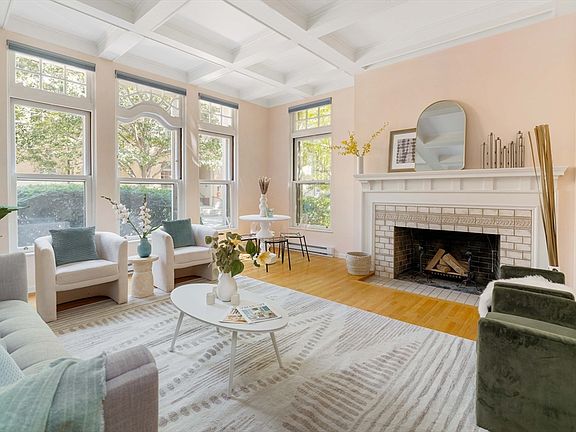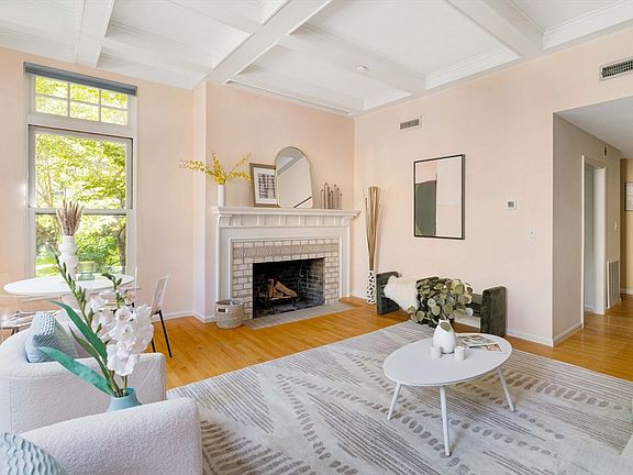 Presenting a simply stunning 2-bedroom 2-full bath unit at Brookline’s coveted The Park condominiums.This gorgeous residence spans 1,010 square feet, boasting soaring ceilings and abundant natural light. The elegant living room features a sophisticated fireplace, coffered ceiling and floor-to-ceiling windows that frame the lushly landscaped grounds.The modern kitchen is just off the living and dining area and it is complimented by an oversized window. The spacious primary bedroom has an en-suite bath and generous closet space.There is a second full bath adjacent to the second bedroom plus in unit laundry and central air. Building amenities include an on-site superintendent, exercise room, common outdoor space, bike room and private storage. There is one parking space and ample additional guest parking. The vibrant surroundings include close proximity to the Muddy River, Jamaica Pond, Brookline Village, and the D line of the T, as well as the Longwood Medical area.