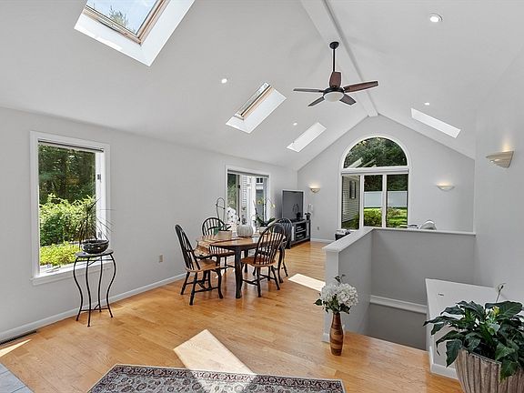 Welcome home to this stunning property featuring a beautifully landscaped yard with a private patio and fenced backyard. As you enter, you'll be greeted by the charm of cathedral ceilings and large windows that offer seasonal views. The home boasts hardwood and tile flooring throughout for easy upkeep. Enjoy a stylish kitchen with gorgeous wood cabinets and granite countertops. The roof is 15 years old with a durable 50-year shingle. The skylights have also been replaced. Recent efficiency upgrades were made in 2023 by Mass Save. An EV charger is available in the oversized garage. Every detail of this home has been thoughtfully renovated and maintained. Keep your gardens & grass beautiful with 3 zones of sprinklers that cover the whole yard. Located just steps from Harold Parker State Park, you’ll have access to walking, biking, skating, hiking, fishing, and cross-country skiing. Plus, enjoy a fantastic school system and a vibrant downtown area. This is one you must see and call home!