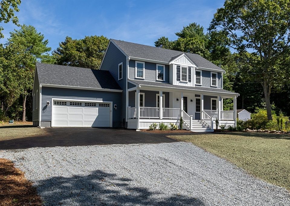 Welcome to this stunning brand-new 3-bedroom, 2.5-bath Colonial, blending classic charm with modern design. The inviting farmer’s porch sets the tone, leading into a bright open-concept layout ideal for today’s lifestyle. The eat-in kitchen features sleek stainless steel appliances, stylish light fixtures, and sliders that open to the back deck for easy indoor-outdoor living. The dining area, accented with nickel gap detailing, can also serve as a versatile home office. Upstairs, the serene primary suite is complemented by two additional bedrooms and a full bath. Beautiful light fixtures are thoughtfully placed throughout the home, adding warmth and character. A two-car garage provides storage and convenience, while the backyard offers space to relax or play. Just 2 miles from Little Harbor Beach and Golf Course, this home delivers the perfect balance of coastal living and everyday ease. one year builder warranty