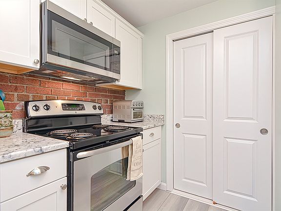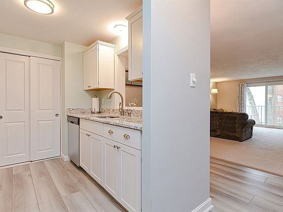 Here is your opportunity to own a beautifully remodeled 2 BDRM, 1.5 B, End unit. The kitchen boasts white shaker cabinets, sparkling stainless steel appliances and luxury vinyl flooring. All closets & pantry upgraded to white panel doors 2022. New slider & windows 2019. The dining area & spacious living room, is a great space to entertain. Sliders provide natural light, fresh air, & lead to your own private balcony to relax on. The spacious primary bedroom has character with its white brick wall & remodeled half bath. The hall leads to a full bathroom with newer vanity, & to the large second bedroom. You will be amazed by the space & closet room here. Elec. baseboard 2020. Elevator, Extra storage & Laundry located on same floor. 1 Deeded Parking, ample guest parking. Amenities: tennis, pool, clubhouse & playground. Close to, commuter rail, restaurants, shopping, & Rt 3. You'll enjoy living close to everything, while being surrounded by the treescape and serenity this condo provides.
