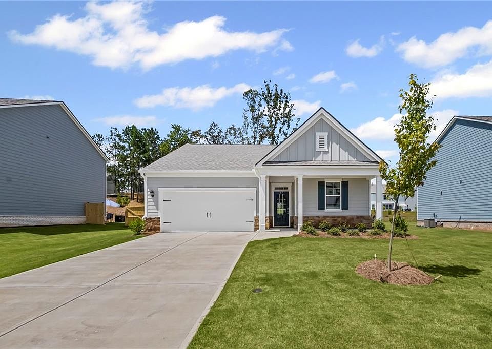 Welcomes you to 65 Grove Springs Court, a new construction single-family home in Parkside at Carter Grove community. This Cali, 4 bedroom and 2 bathroom ranch floor plan home, has a lot to offer your family in the 1,774 square feet. Your family can enjoy spending time outside in the large, flat backyard. A long foyer leading to the main living area and bedrooms welcomes you as you enter this home from the front porch. At the front of the home, 2 secondary bedrooms are split by the guest bathroom. Each bedroom boasts a walk-in closet, including the 3rd bedroom that is the perfect size for an office space or guest bedroom. The laundry room sits right outside of this room providing easy access for all to do laundry. Continuing deeper into the home, you walk into the open concept kitchen and living area. The chef in the family will enjoy all the kitchen has to offer including, stainless-steel appliances, granite countertops, white shaker cabinets, and a large walk-in pantry. An oversized island separates the kitchen from the dining area. Enjoy spending time with family and friends in the spacious living room or outside on the covered back patio. The primary suite is tucked away to the back of the house, off of the living room, providing privacy homeowners can use to relax and unwind. The primary suite comes with a considerable walk-in closet, dual vanity, and separate walk-in shower and soaking tub.