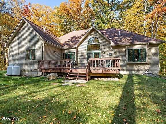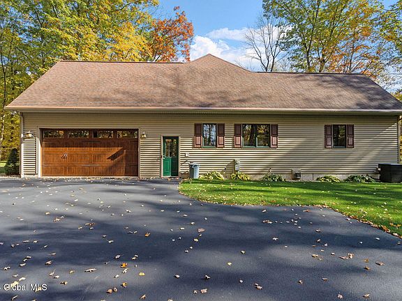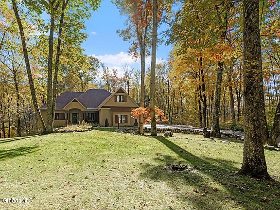 Crafted by Dan Barber, this immaculate 4+ bed, 3 bath home on over 3,200 sq. ft. of Adirondack luxury on 3+ private acres. Located in the highly sought-after Lake George school district, this property combines elegance and convenience. It features a 1st floor master suite, hardwood floors throughout, a spacious open kitchen with granite countertops, cathedral ceilings and 1st fl laundry. Two cozy fireplaces and a heated garage, fully finished walk-out basement with radiant heated floors and central vacuum ready. With abundant storage and bonus rooms perfect for a gym, office, or guest space. You will love the new fire pit area designed by Goulds! This home truly has it all. Just minutes to Glens Falls CC, Highland GC, the Lake George bike path, Glen Lake boat launch, and 10+ min from LG!