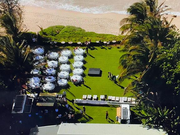 Set on a lush, manicured lawn framed by swaying palms and vibrant greenery, the property features direct beach access and panoramic ocean views that make every moment unforgettable. Designed to accommodate both intimate gatherings and large-scale events, the grounds are ideal for weddings, private retreats, or as your own personal island sanctuary.