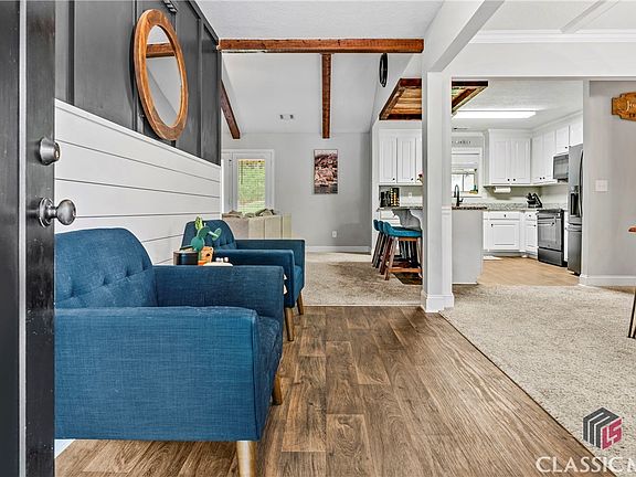 Nestled in one of Madison County's most desirable neighborhoods, this charming ranch-style home offers the perfect blend of comfort and convenience. Located close to top-rated schools and just a 10-minute drive to Kroger and the bustling shopping center. Step onto the inviting front porch, perfect for leisurely summer mornings, or enjoy gatherings on the recently enclosed back porch. As you enter, you'll be greeted by a stunning foyer featuring a statement-making combination of board and batten and shiplap walls. The separate dining room boasts a beautiful coffered ceiling, adding an elegant touch to your dining experiences. The kitchen is a chef's delight with a spacious island perfect for breakfast, ample cabinet and counter space, and an open layout that seamlessly connects to the living room with natural light. The master bedroom is generously sized, featuring a walk-in closet and an additional linen closet. The master bath offers a luxurious retreat with double sinks, a separate walk-in shower, and a soaking tub.