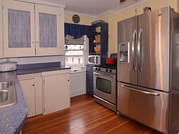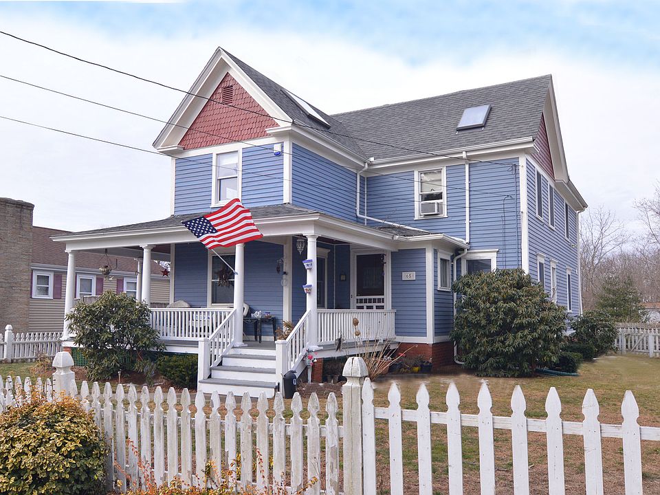 Rare opportunity to call this beautiful 1890's Victorian in desirable Waddington home! This charming home is situated on a corner lot and offers a wrap around front porch overlooking a well manicured front yard. Entering through the front door, you'll be greeted by a formal dining room that is adjacent to the double parlor/ living room space with an electric fireplace. Towards the back of the first floor, the home offers a nice sized kitchen and is completed by an updated half bath. On the second level, the home boasts grand cathedral style ceilings and an oversized recently renovated full bathroom. The Primary Bedroom is spacious and filled with natural light from the windows and skylight and offers a walk in closet. Completing the second floor are two additional bedrooms boasting natural light and nice closet space. Partially finished basement, which is great for a den space, office, playroom and the list goes on, with a large unfinished area for storage. Around the back of the home, you will find a spacious fenced in yard and private patio space. Other items of note- Hardwood floors throughout the home (except in one of the upstairs bedrooms, hardwoods below carpet), exterior was recently redone and freshly painted, the wrap around porch was replaced with vinyl and composite decking (for many years of life ahead!), handsome molding throughout the home that adds yesteryear charm, gas heat, and large off street parking area that fits 3+ cars. Welcome Home!