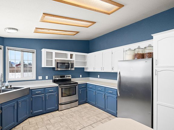 Updated with fresh paint inside and out, new carpet, plumbing fixtures, lighting, laminate flooring, door hardware and siding. 1994 Triple Wide Manufactured Home on .56 of a acre corner lot, 3 bedroom, 2 baths. Fenced yard. Primary bedroom has en suite with a garden tub, separate shower and a walk-in closet. Kitchen has stainless steel appliances, skylights, built-in microwave and a counter to eat at. Familyroom right off the kitchen with a wood burning stove and a bay window. Plus a Dining Room and another Living room. Side entrance into a mud room with the laundry and extra storage. Extra Storage Shed in the yard. Curlew Lake access