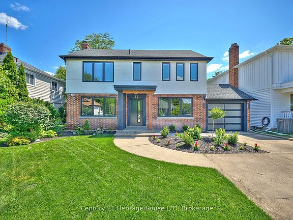 Stunning 4 bedroom, 3.5 bath executive home backing onto a pristine and tranquil golf course! The breathtaking views of the golf course from the kitchen, primary bedroom, 2nd floor balcony and backyard are sure to impress! This fully updated home offers over 3000 sq ft of finished living space and features high-end finishes throughout. The show stopper kitchen features two toned cabinetry, an expansive window overlooking the backyard and golf course, an oversized centre island with waterfall counters, 2 sinks, s/s appliances, quartz counters and feature wall quartz backsplash, and a walk-in pantry. Other highlights of the main floor include engineered hardwood flooring, a formal dining room, living room plus bonus family room, a 2pc bath and mud room with inside access from the garage. Patio doors off the family room lead to a gorgeous exposed aggregate concrete patio which overlooks the stunning golf course. As you head upstairs, you'll love the custom open riser staircase and glass railings which leads directly to your covered 2nd floor balcony! The primary suite offers a custom 3pc ensuite with curbless glass and tile shower, and a walk-in closet with a build in storage system. 3 additional bedrooms, a 4pc bath, and convenient upper floor laundry completes the 2nd floor. The basement is fully finished with an open concept rec room and office area, and offers an additional 3 pc bath. This stunning home is all located near shopping, Brock U, restaurants, golfing, highway access and more!