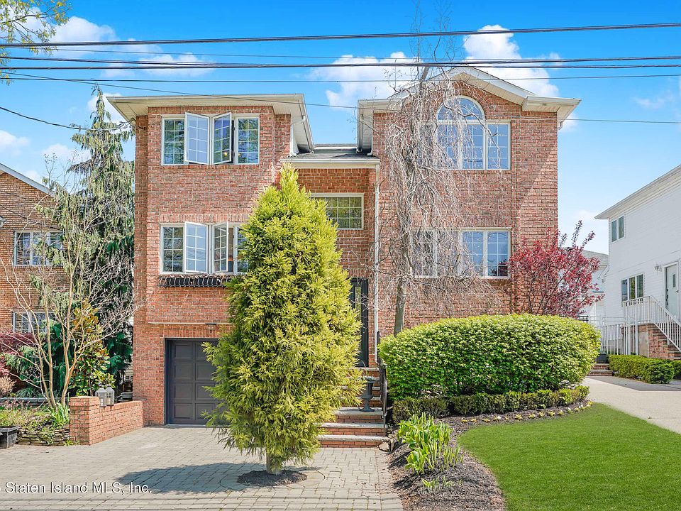 Magnificent 2-family, detached, 4-bedroom, 4-bath, Center-Hall Colonial home with a built-in garage, fully-paved yard with a gazebo, outdoor kitchen with a built-in pizza oven, legal studio rental apartment, and a full-finished basement with separate entrance. This house has been very well-maintained and is in excellent move-in condition! Featuring a wide-open layout, hardwood floors, large eat-in kitchen with granite countertops and access to deck and yard, family room with fireplace, grand primary bedroom suite with private 4-piece bath, 3 additional big bedrooms, 5-zone baseboard heating with radiant heat in the kitchen and primary bathroom, 2-zone central AC, and tasteful trims and finishes throughout. Located in the prestigious Dent Road area of Great Kills, close to parks, schools, shopping, restaurants, and public transportation. Level 1: entry foyer, living room, dining room, kitchen, family room with fireplace, half bath, dinette, access to the deck, Studio rental. Level 2: primary bedroom suite with private 4-piece bath, bedroom 2, bedroom 3, bedroom 4, full bath. Basement: full finished, separate entrance, kitchen, gym, additional room, three quarter bath, laundry room, storage and utilities.