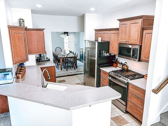 Beautiful Mahogany hardwood floors in the grand foyer and formal dining room. Tile in the custom kitchen and breakfast nook. Brand new carpet throughout. Enjoy dinner on the deck and take in the breathtaking views! Quite often you’ll be entertained by deer, turkey and other wildlife! Warm up in the family room with a cozy gas fireplace. Formal living room and powder room complete the first floor. You’ll find four bedrooms, as well as a laundry room with sink upstairs. Master bedroom has a large bathroom with double sinks, garden tub, shower and large walk in closet. Finished basement has endless possibilities! This could be used as an in law suite or apartment with separate entrance and secluded walk out patio. One or two additional bedrooms, depending on your need, along with a large bathroom and small kitchenette area with sink and cupboards. You’ll also find a utility room with shelving for ample storage. Property also includes a large shed, and large attached two car garage. Country living, yet close to town for shopping and dining!