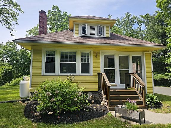 Welcome home to this pristine, updated Sears kit house bungalow in Hadley offering the best of all worlds- efficient living, low Hadley taxes, and a location convenient to Amherst, Northampton, and area schools/University. A bright and airy living room with fireplace flows into dining room through arched doorway. Kitchen looks out over the spacious yard and includes pantry with laundry; main level also offers two bedrooms and full bath. Tasteful updates to kitchen and bath include premium finishes- of particular note is Ashfield Galaxy Schist used for kitchen counter and bathroom tile. Heating and cooling provided by new ducted heat pump system. Detached 2-car garage offers ample space for work & storage. A rare find!