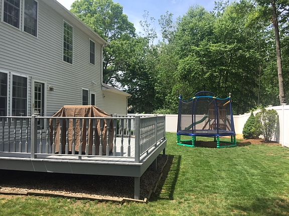 Pristine 3 bedroom contemporary colonial style home located in desirable Hunter's Crossing. Brand new roof and inground sprinklers. Open and airy, and filled with natural light, this home is tastefully done in neutral colors and is sure to please. The kitchen boasts new cabinets, granite countertops and Stainless Steel appliances. Oak hardwood floors are throughout the main level, second floor landing and hallway. The second floor and master bath is done with a granite top vanity. The master provides access to a large walk in closet. Back doors lead to an oversized wood deck and that abuts conservation land.There is a park in the neighborhood that includes a tennis court, full basketball court and softball field. This home is move-in ready, just sit back and enjoy! A must see! Won't last, call today!