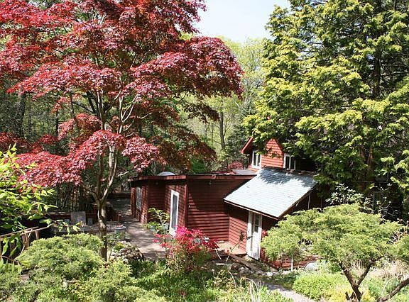 Charming period farmhouse nestled within 60 year old woodland gardens of varied Japanese maples, cedars, mature rhododendrons complete with stone-lined paths. Open floorplan home has wood floors, fireplace and wood stove, wall of windows, deck perched over woods. Kidney shaped pool and garage a plus.