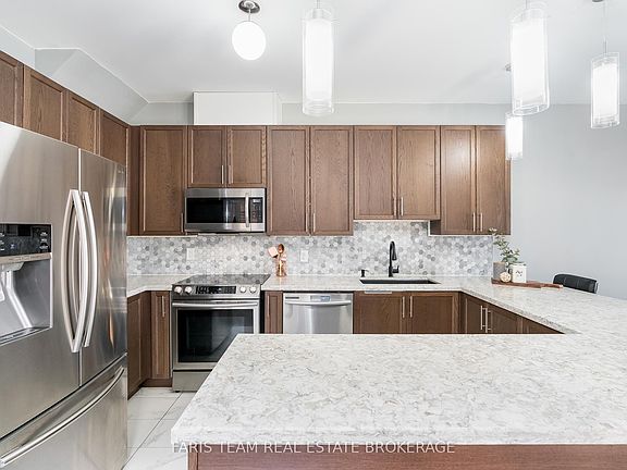 Top 5 Reasons You Will Love This Home: 1) Step inside to discover thoughtful updates throughout, including fresh main level flooring, a fully renovated powder room and primary ensuite, plus a brand new patio door with built-in shutters 2) The heart of the home is a spacious kitchen featuring sleek quartz countertops, a modern backsplash, stainless-steel appliances, and a breakfast bar that seamlessly connects to the open living area, making it perfect for everyday meals and effortless entertaining, while the finished basement elevates your living space with a custom-built bar and a large recreation room, ideal for movie nights, hosting gatherings, or creating the ultimate games retreat 3) Outside, enjoy one of the larger backyards in the neighbourhood, complete with a generous deck, gazebo, and a private courtyard offering a thoughtfully designed mini kitchenette equipped for an outdoor gas stove or portable barbeque, along with a discreet central garbage centre to keep everything tidy and functional 4) Additional touches like the epoxy-finished garage floor and oak staircase with iron spindles add extra charm, while being nestled in one of the area's most desirable communities, providing an exceptional choice for families, first-time buyers, or investors 5) Standout feature's include a beautifully maintained private pond, complete with a tranquil fountain and scenic walking path just steps from your door, along with private snow removal and professionally managed landscaping of common areas, ensure the neighbourhood stays pristine year-round. 2,296 above grade sq.ft. plus a partially finished basement. 2,784 sq.ft. of finished living space.
