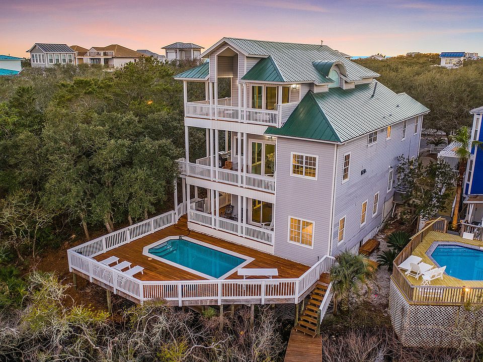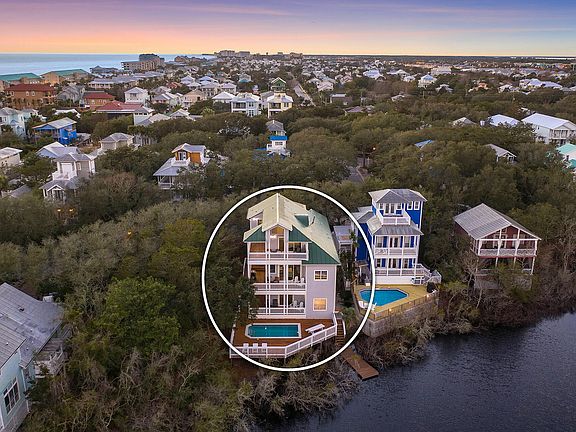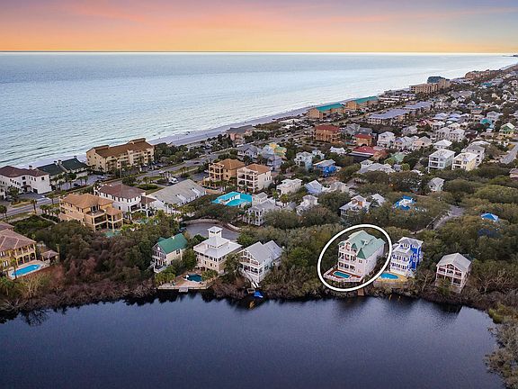 Fantastic Investment Opportunity!Beautifully furnished 5-bedroom, 6-bath home with 3 bunk areas, a private pool, and a lakeside dock in the sought-after Kokomo Kove community of Crystal Beach. The gourmet kitchen features high-end appliances, including a Viking stove and two dishwashers. Designed for gatherings, the home offers two living areas, a spacious dining room, and three wraparound balconies with tranquil lake views.Relax by the pool, fish off your private dock, and enjoy parking for five. Sold furnished (with a few exceptions); golf cart negotiable. Kokomo Kove offers private beach access and is close to Destin's top dining and shopping.