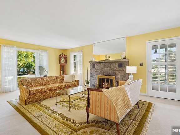 Spectacular views and golf course access! There are only so many homes in the Ramsey Golf and Country Club that have this kind of view and access to the private golf course, and this is one of them. Being offered for the first time in 45+ years, this charming 4 BR, 3 BA Expanded Cape beside the 15th tee box has stunning western exposure in a location that can't be beat. Step inside and discover a home that has almost 3000sf, filled with character and potential. An entry foyer leads you to a large formal living room with fireplace, formal dining room and a sun porch, a perfect spot to enjoy a book. The eat in kitchen has sliders to the back patio and sweeping views of the golf course and lake. Down the hall are two bedrooms, a large full bath and a cozy den that could be transformed into a bedroom or office. The 2nd level has 2 large bedrooms, a full bath and lots of storage. The huge basement is partly finished with a fun bar and fireplace, laundry and a sauna where you can warm up after a golf round in the chilly air. Enjoy morning coffee on the patio with peaceful views, meet friends at the clubhouse, pool, or first tee, or stroll into downtown Ramsey for shopping, dining, and access to the NYC train – all just minutes from your door. RGCC is a unique community with a brand new, elegant clubhouse, 18-hole golf, pool with open air bar, paddle tennis/pickleball, kayaking, social events for all ages and much more. Don't miss this chance.