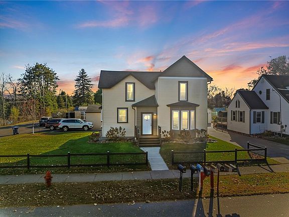 Experience the perfect blend of modern comfort & lakeside charm in this beautifully renovated 3-bed, 2.5-bath home. Every detail has been thoughtfully updated, & just steps from the water. Wake up to breathtaking sunrises over the lake. Step inside & be captivated by the airy, open-concept main floor, accentuated by soaring 9-foot ceilings & new solid OAK flooring. The heart of this home is the stunning custom kitchen, remodeled in 2019. It features solid hickory cabinets w/soft-close drawers, ample built-ins, & elegant under-cabinet lighting. An adjacent office nook w/unique raw edge wood desk provides the perfect workspace. The main floor also includes a convenient laundry area. The primary en-suite is a peaceful retreat for ultimate relaxation. 2 additional bedrooms provide ample space. The home has been meticulously updated, including ALL NEW electrical, plumbing, and sheetrock in 2018. Recent upgrades include all new windows (2024) that tilt in for easy cleaning, stylish window treatments (2025), and new basement stairs (2023). Practical touches like USB outlets, a hidden charging station for a cordless vacuum, and smart space-saving pocket doors enhance daily living. Your outdoor oasis awaits. Sip your morning coffee on the lovely deck, relax in the hot tub, or cultivate your green thumb with the raised garden boxes. The property features low-maintenance landscaping w/beautiful hydrangeas, a handy shed, & new concrete pad ready for a third garage stall. This home offers more than just a place to live; it provides a lifestyle. Drop your kayaks in the water just steps from your door, go fishing anytime, or take a short walk to the nearby beach, boat landing, pickleball courts, & sports complex. You're also within walking distance of coffee shops, Kwik Trip,& shopping. W/a smart Honeywell thermostat, ceiling fans, & dimmer switches throughout, this home seamlessly combines efficiency w/comfort. Don't miss your chance to own this exceptional lakeside property