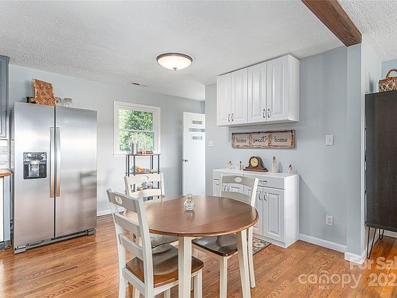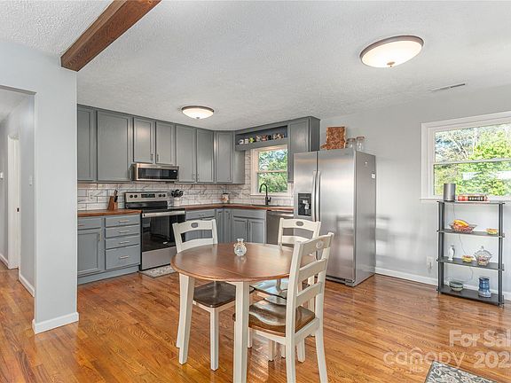 Charming brick ranch with classic appeal and modern updates! This move-in ready home features warm wood flooring, butcher block countertops, stainless steel appliances, and a cozy wood-burning fireplace in the living room. Take in lush mountain views from your front porch, or unwind in the spacious, level yard perfect for enjoying the outdoors and hosting gatherings around the fire pit on crisp mountain evenings. The basement offers ample storage for all your outdoor gear or the potential to finish it out into a bonus living space, complete with a stunning stone fireplace. Fresh, low-maintenance landscaping adds to the home’s curb appeal, and a large side deck is ideal for BBQs and entertaining. Just a few houses down, you’ll find a river where you can fish or simply relax to the sounds of nature. Don't miss this rare opportunity to own a peaceful mountain retreat that’s both functional and full of charm!