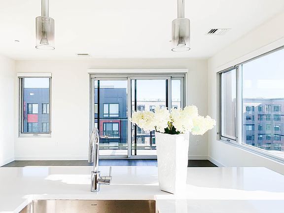 Penthouse Southeast CORNER 2BR/2BA wBALCONY&Garage PARKING INCLUDED w/serene views of the City Skyline, Boston Harbor & Courtyard at SLIP65, East Boston Waterfront's premier luxury condo community. Sleek kitchen offers oversized island&equipped w/custom cabinetry&PH Spec $8300 integrated MONOGRAM Refrigerator&$1720 MONOGRAM DW+ 5 burner gas stove, oven&MW. Corner Living/dining area w/balcony. King Primary BR w/Walk-In-Closet+ensuite BA ft. dual vanity&glass shower. Spacious 2nd BR w/large closet&Tub/Shower Combo&Linen Storage. In-Unit Bosch W/D &HW Fls throughout.Set on 7 acres of prime waterfront, enjoy a lifestyle unlike no other w/direct access to the Boston Harborwalk, 24/7 Concierge, State of the Art Gym&Yoga Studio w/Locker RMs, Multiple Harbor Lounges w/Catering Kitchens&Grill Decks, Dog Park, Pet Wash, Bike Stg, Work Pods, Community Programming, 3 Dining Options: Cafe Iterum, MIDA Italian, Smoke Shop BBQ&more. Minutes to STATE ST, MGH, Seaport via Blue Line, Ferry, Water Taxi.