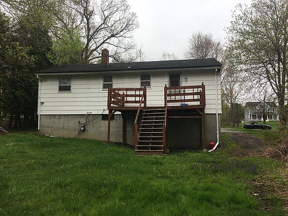 One owner Split Entry needs new owner to revive this home. Hardwoods in diningroom and bedrooms. Wall to wall carpeting in livingroom and hallway. Lower level great potential for more living area - unfinished but has working ceiling heat vents. Forced hot air heating and cooking fueled by natural gas. Woodstove in LL seller to remove before closing. Exterior clapboards peeling paint. Deck could use new coat paint/stain. Property will not qualify for all types of financing...only conventional, renovation loan, or cash. Additional lot behind house lot provides more privacy.
