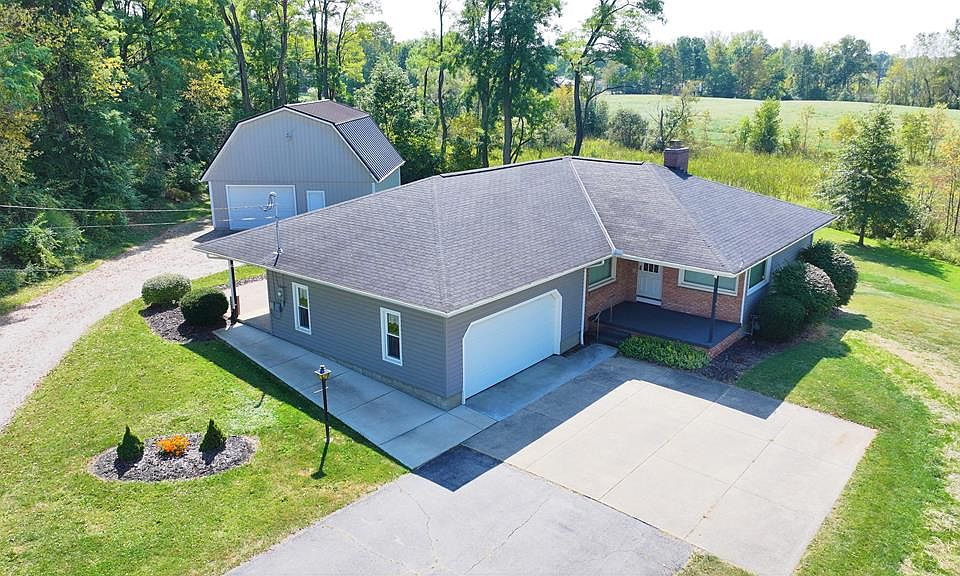 This is your opportunity to own a well-maintained 3 bedroom, 1.5 bath ranch located in the Madison School District. The kitchen leads out to a covered patio perfect for grilling season or a morning cup of coffee. You also have a functional dining room with a built-in pantry for added storage and organization. Each of the bedrooms has ample closet space. The lower level features a large unfinished basement with a half bath and a wood burning fireplace. It is a great starting point for creating additional living or recreational space. A standout feature is the 30x30 detached garage with a second floor. This is a fully constructed building, not a pole barn, with electricity and R-30 insulation. Ideal for serious projects or extra storage. Staying comfortable all year is a breeze with the gas furnace and central air. Set on 1.47 acres with plenty of outdoor entertaining space while still be close to restaurants and shopping. Public water connection completed in September 2025.
