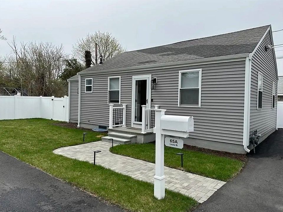 Discover the charm of 65 Louis St U:A, Barnstable, MA, a delightful fully remodeled single-family residence in great condition nestled in Barnstable County. The kitchen presents a welcoming space with stone countertops that offer both beauty and durability, and shaker cabinets complemented by crown molding, providing a touch of elegance and ample storage. Relaxation is assured in the bathroom, which features a walk-in shower. The property features a patio perfect for outdoor enjoyment, along with a fenced backyard that offers privacy and security. The residence offers two bedrooms and one full bathroom, thoughtfully arranged within 736 square feet of living area, all situated on a 3485 square foot lot. This single-family residence, built in 1950, offers a wonderful opportunity to embrace comfortable living. Do nothing, just move in and enjoy!